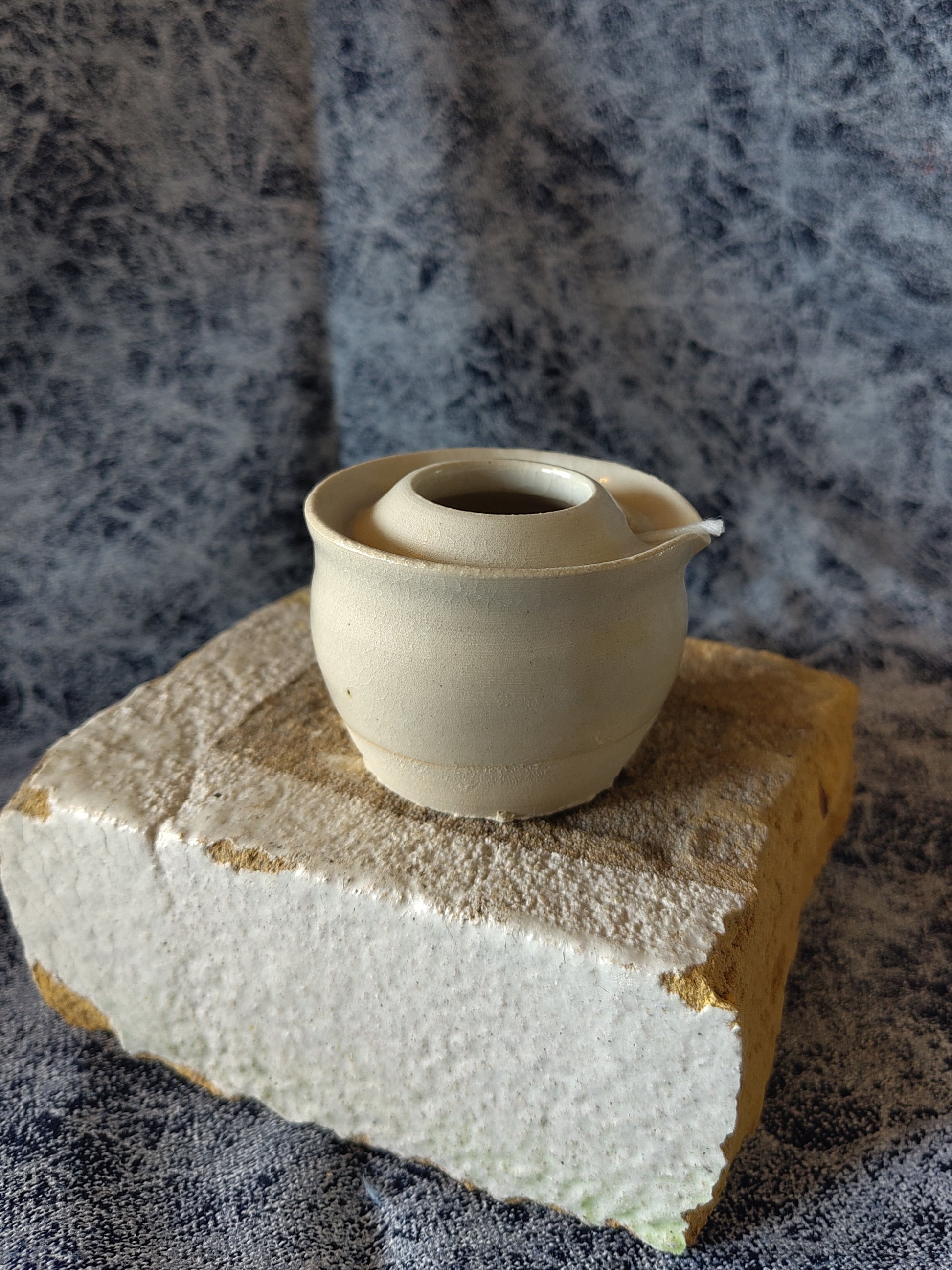 Small hand thrown oil lamp that is perfect for use on an altar.